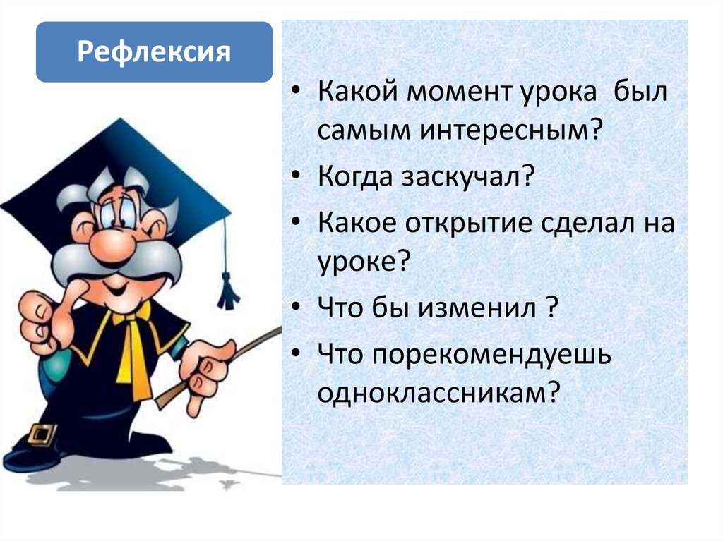 Рефлексия• Какой момент урока был