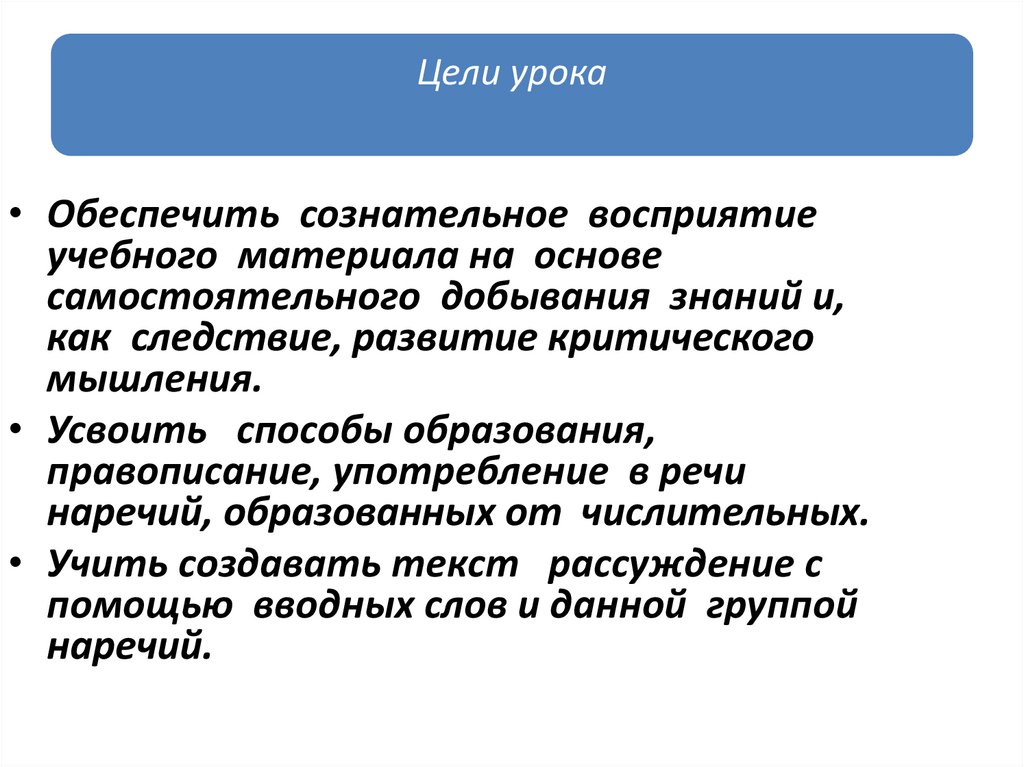 Цели урока• Обеспечить сознательное восприятие