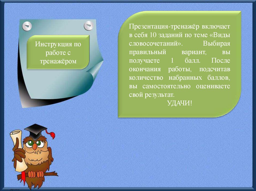 Презентация-тренажёр включает