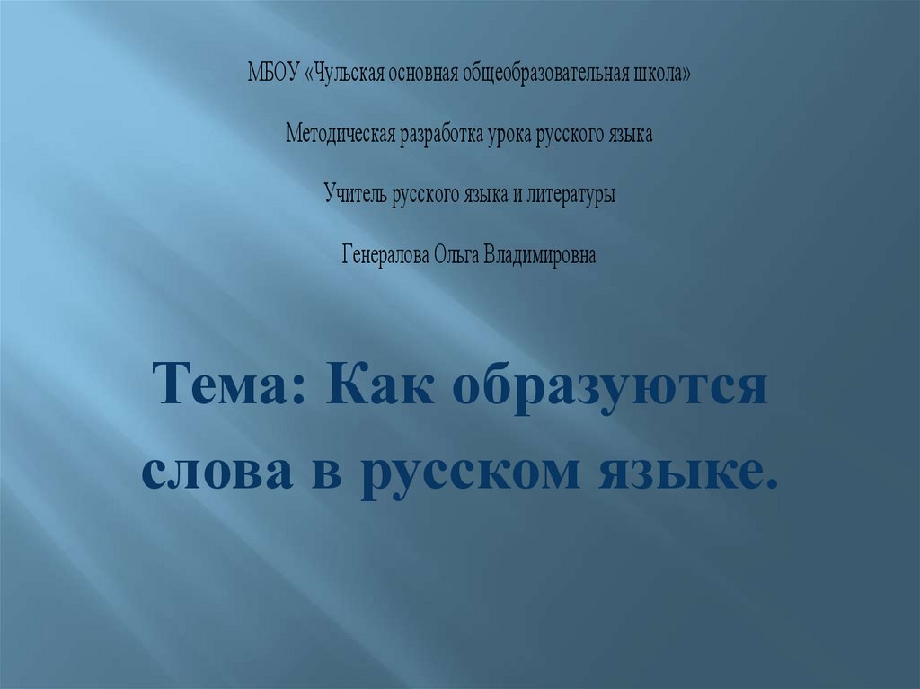МБОУ «Чульская основная общеобразовательная школа»Методическая разработка урока русского языка