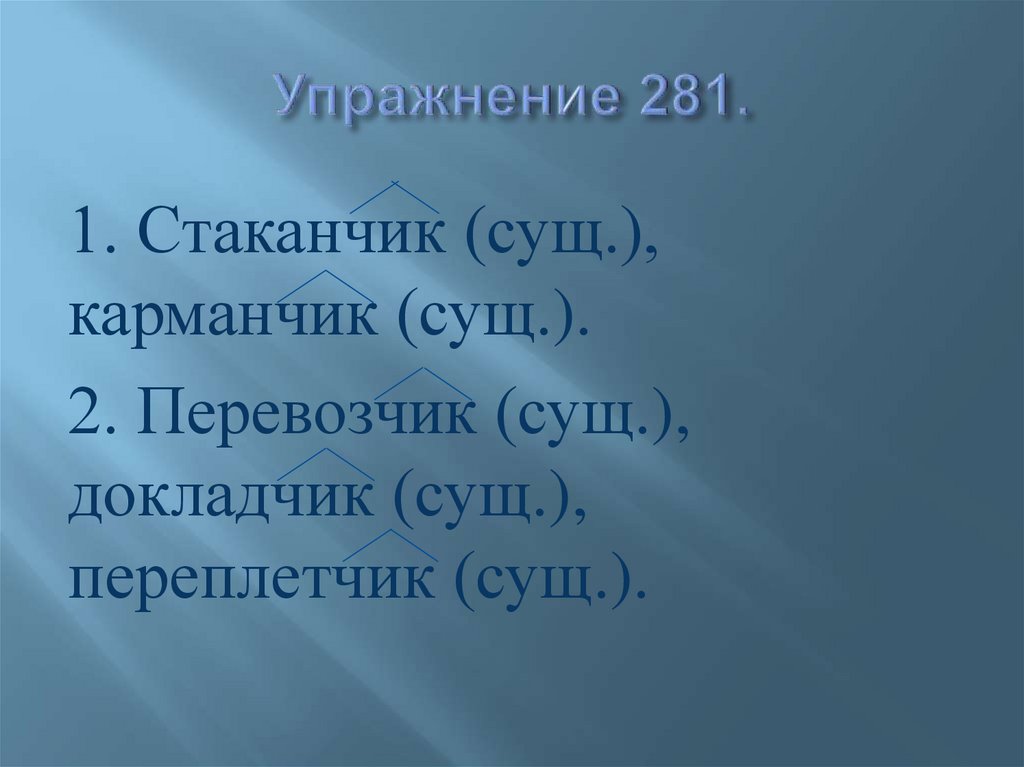 1. Стаканчик (сущ.),карманчик (сущ.).