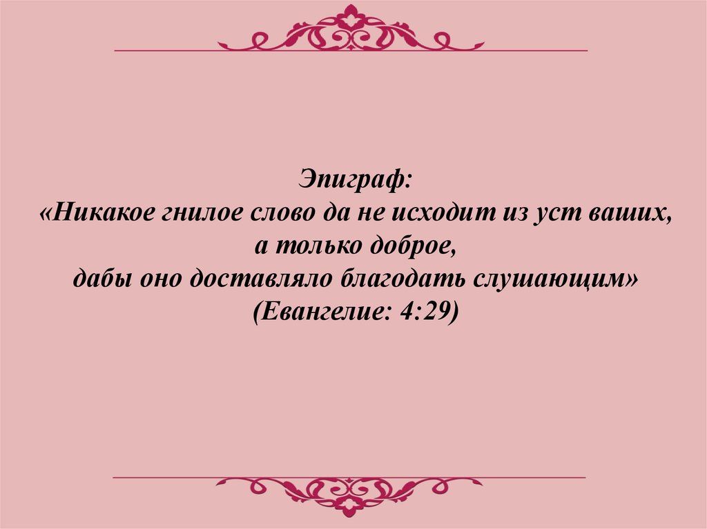 Эпиграф:«Никакое гнилое слово да не исходит из уст ваших,