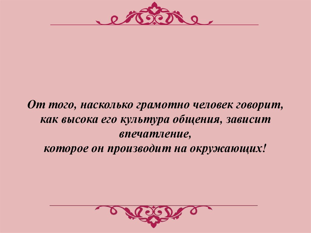 От того, насколько грамотно человек говорит,как высока его культура общения, зависит