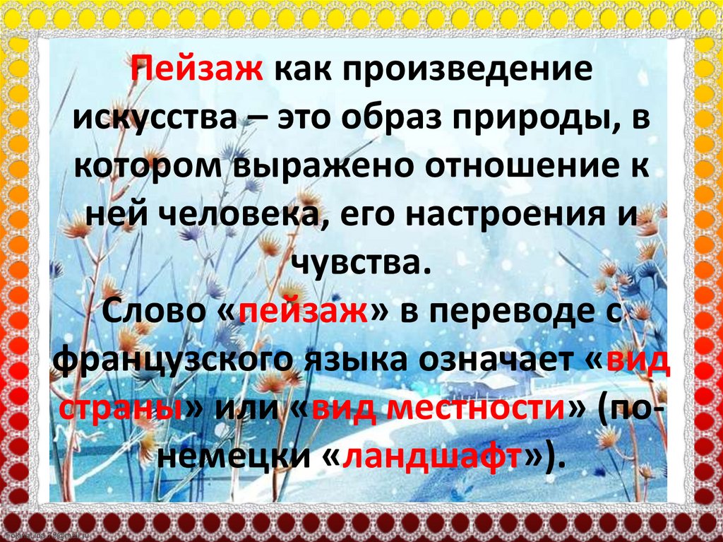 Пейзаж как произведениеискусства – это образ природы, в