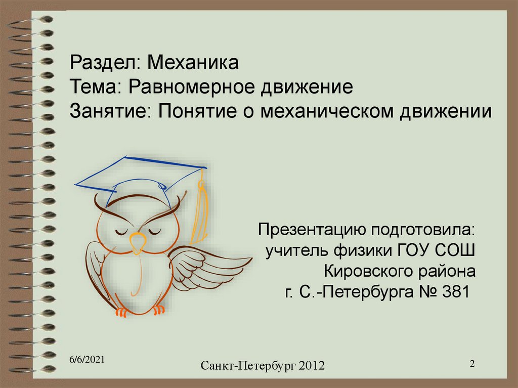 Занятие: Понятие о механическом движении