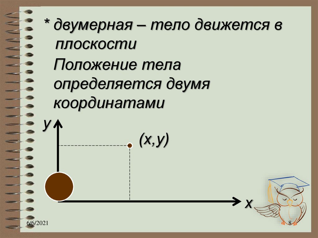 * двумерная – тело движется вплоскости