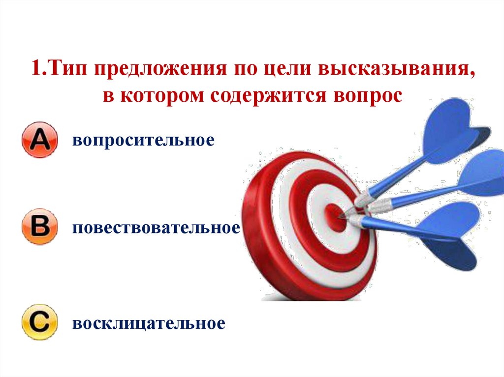 1.Тип предложения по цели высказывания,в котором содержится вопрос