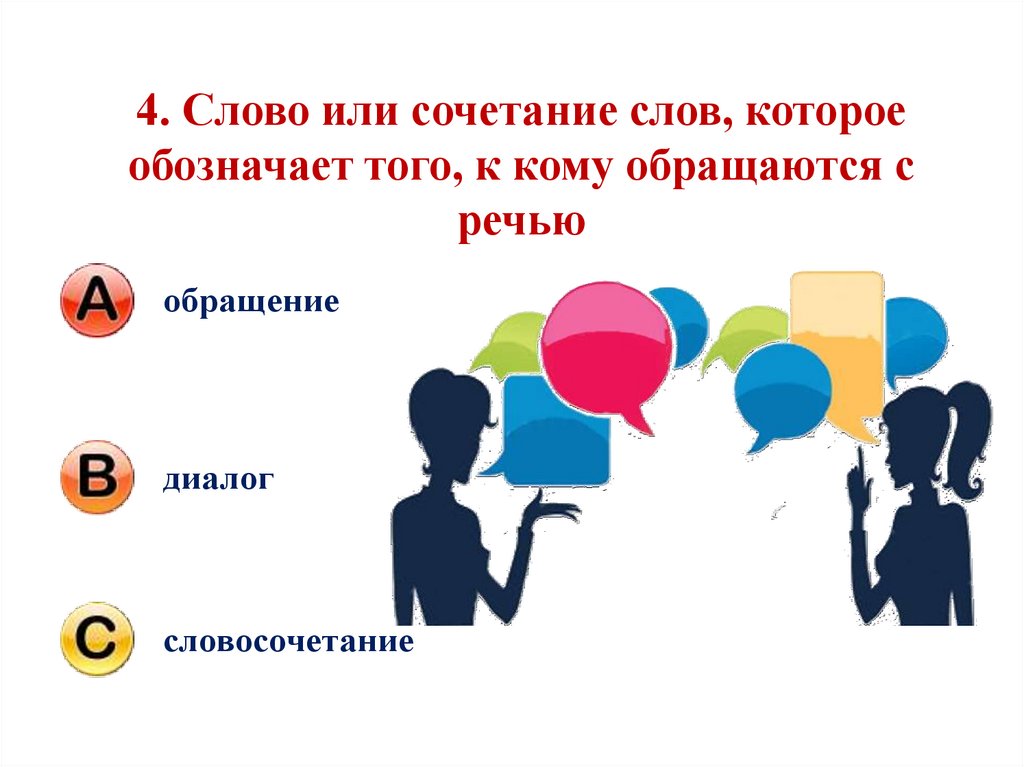 4. Слово или сочетание слов, котороеобозначает того, к кому обращаются с