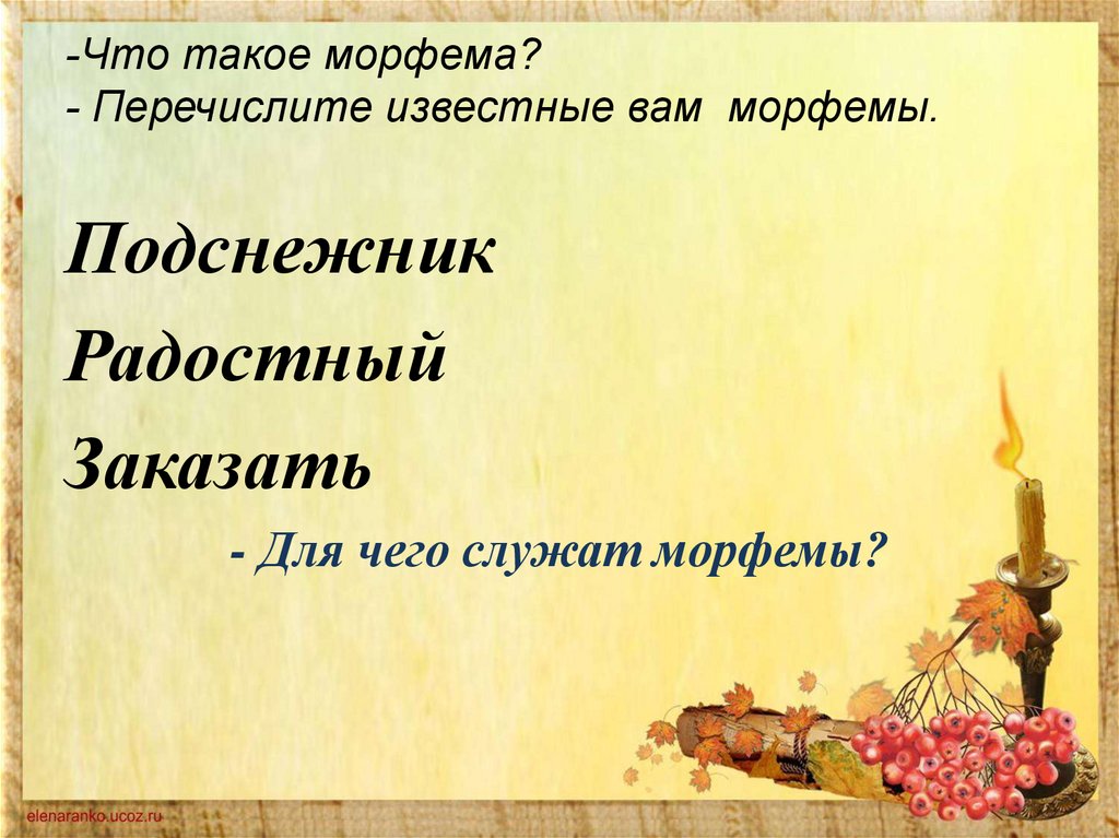 -Что такое морфема?- Перечислите известные вам морфемы.