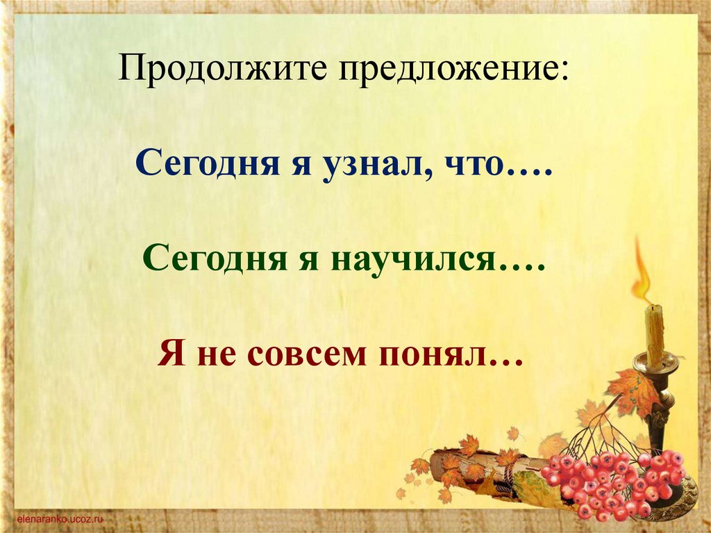 Продолжите предложение:Сегодня я узнал, что….