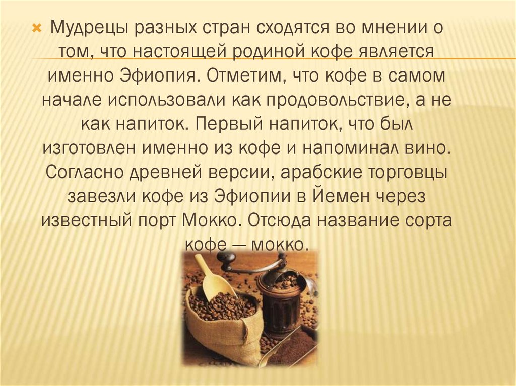 Мудрецы разных стран сходятся во мнении отом, что настоящей родиной кофе является