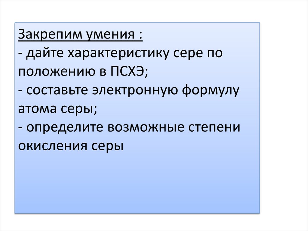 Закрепим умения :- дайте характеристику сере по