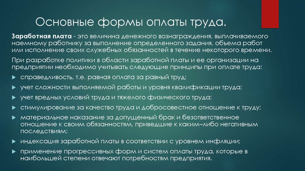 Основные формы оплаты труда.Заработная плата - это величина денежного вознаграждения, выплачиваемого