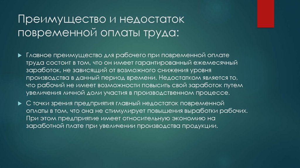Преимущество и недостатокповременной оплаты труда: