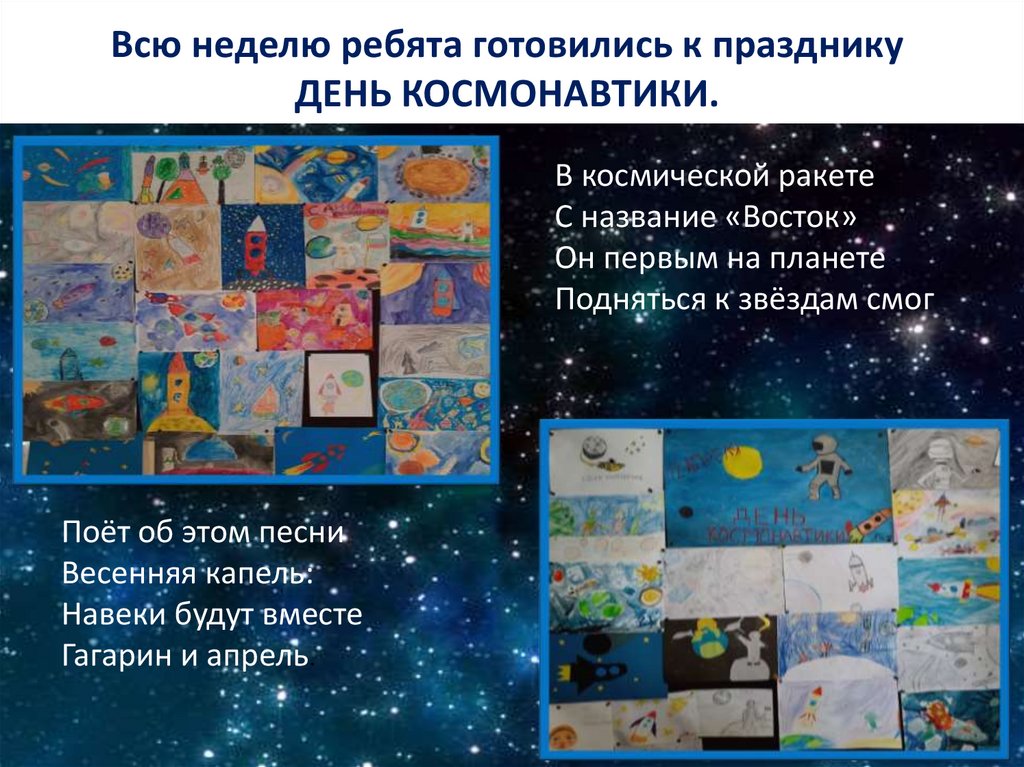 Всю неделю ребята готовились к праздникуДЕНЬ КОСМОНАВТИКИ.