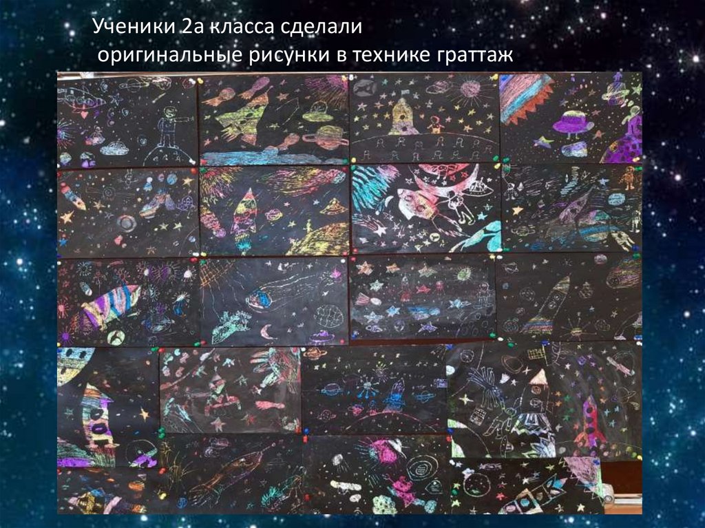 Ученики 2а класса сделалиоригинальные рисунки в технике граттаж.