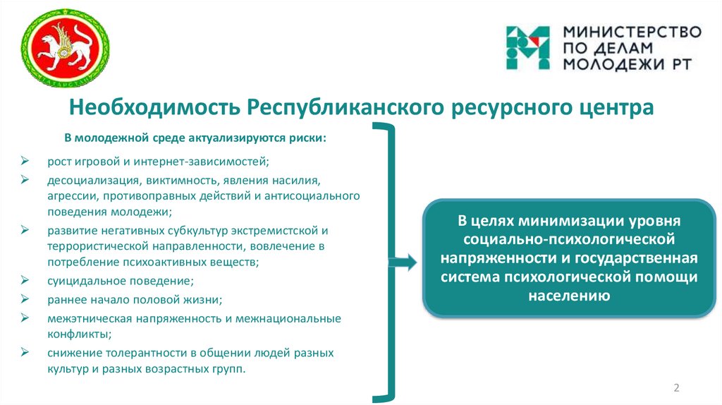 Необходимость Республиканского ресурсного центраВ молодежной среде актуализируются риски: