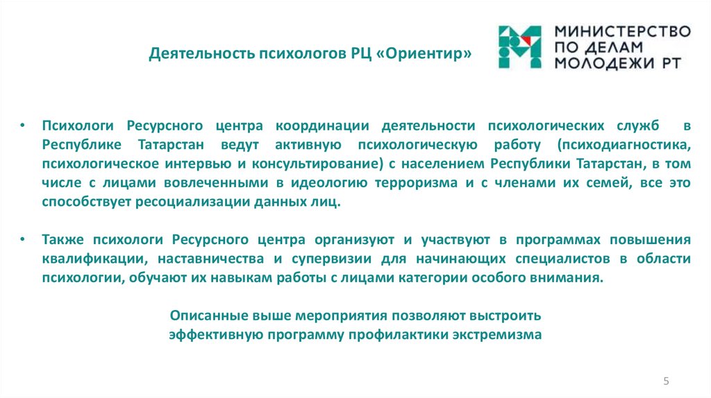 Деятельность психологов РЦ «Ориентир»Психологи Ресурсного центра координации деятельности психологических служб