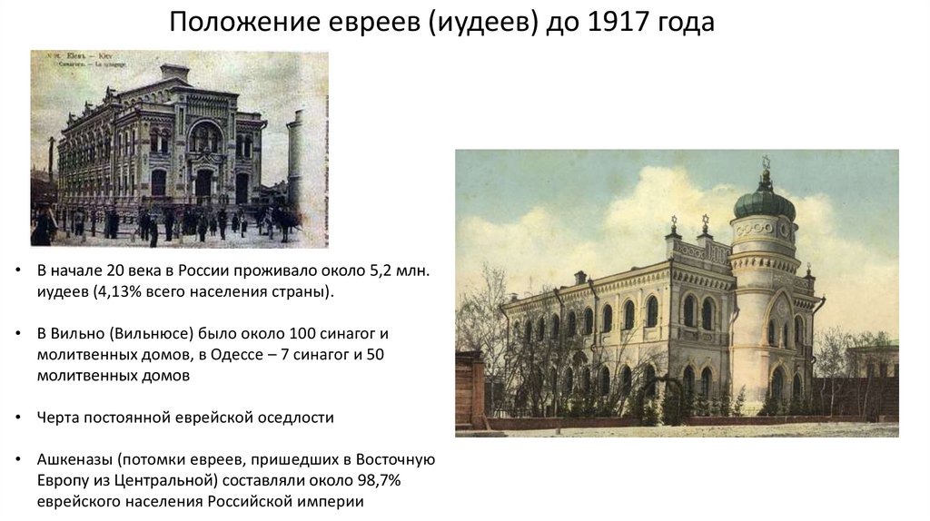 Положение евреев (иудеев) до 1917 года• В начале 20 века в России проживало около 5,2 млн.