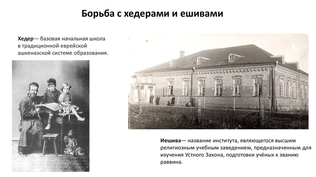Борьба с хедерами и ешивамиХедер— базовая начальная школа