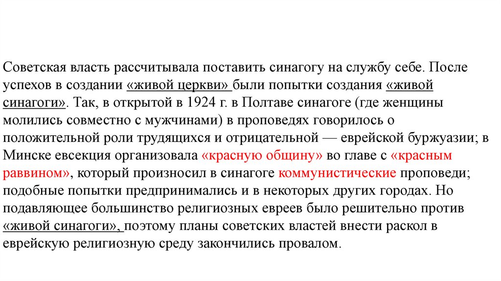 «живой синагоги», поэтому планы советских властей внести раскол в