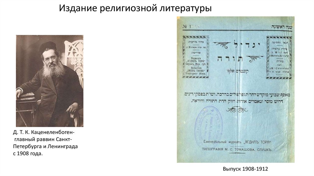 Издание религиозной литературыД. Т. К. Каценеленбогенглавный раввин СанктПетербурга и Ленинграда