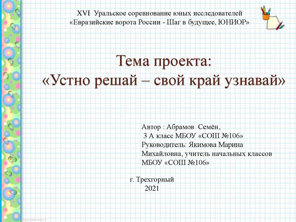 XVI Уральское соревнование юных исследователей«Евразийские ворота России - Шаг в будущее, ЮНИОР»