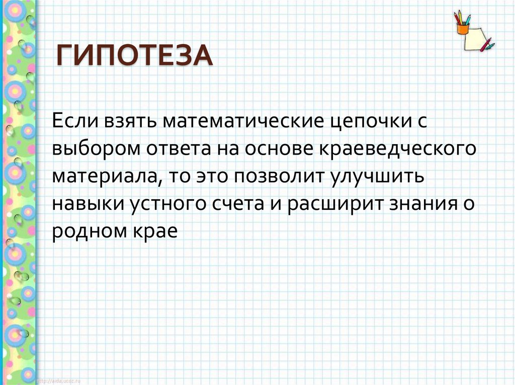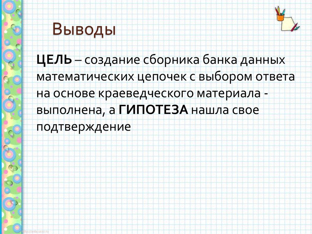 на основе краеведческого материала выполнена, а ГИПОТЕЗА нашла свое