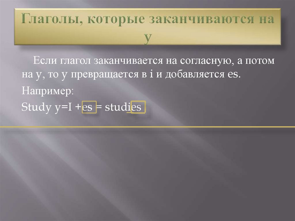 Если глагол заканчивается на согласную, а потомна y, то y превращается в i и добавляется es.