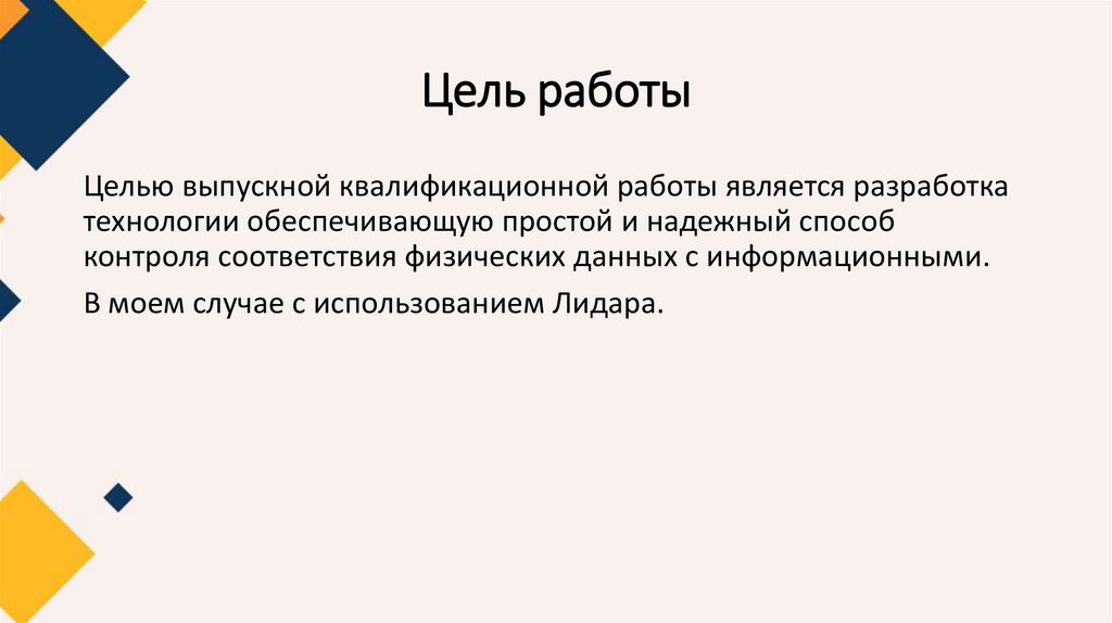 Цель работыЦелью выпускной квалификационной работы является разработка