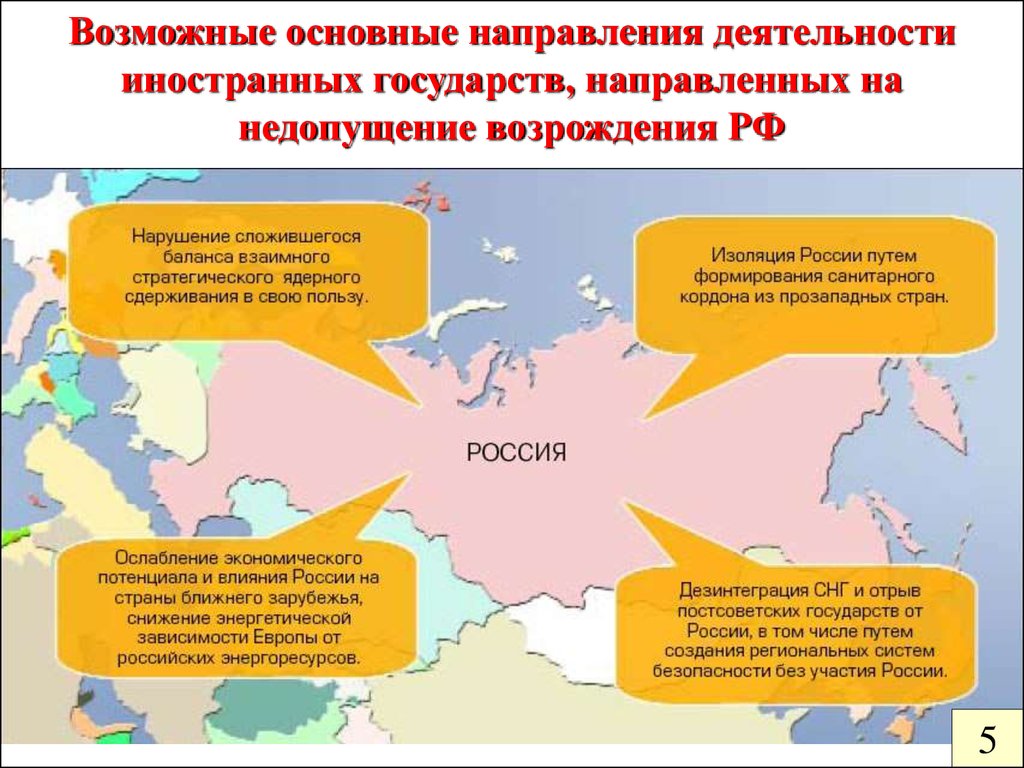 Возможные основные направления деятельностииностранных государств, направленных на