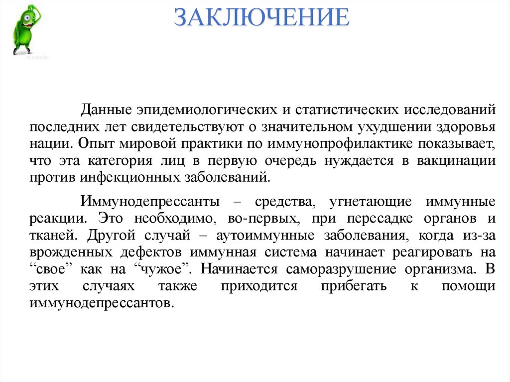 ЗАКЛЮЧЕНИЕДанные эпидемиологических и статистических исследований