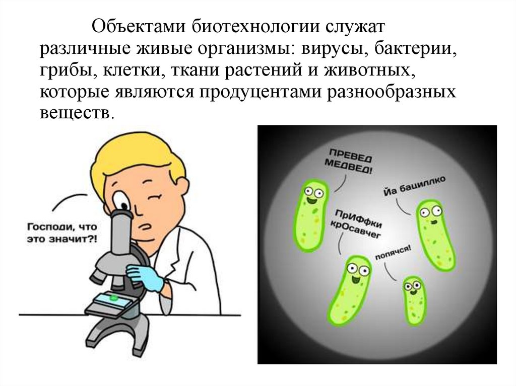 Объектами биотехнологии служатразличные живые организмы: вирусы, бактерии,