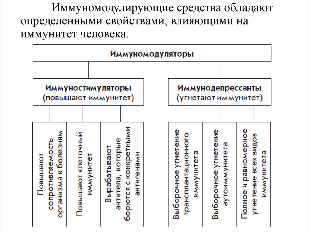 Иммуномодулирующие средства обладаютопределенными свойствами, влияющими на
