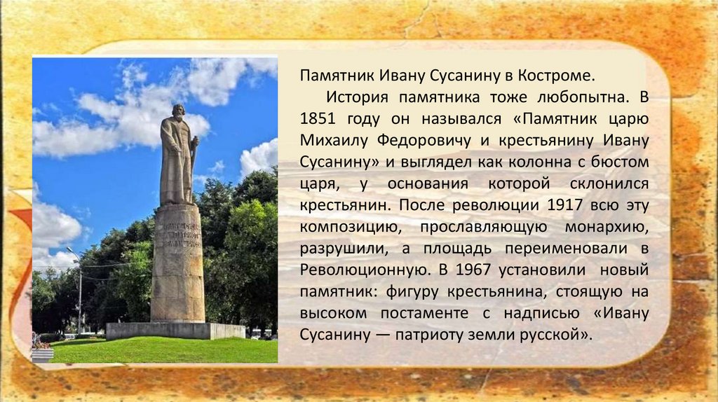 Памятник Ивану Сусанину в Костроме.История памятника тоже любопытна. В