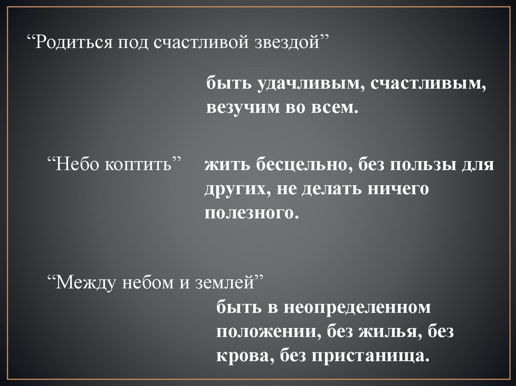 “Родиться под счастливой звездой”быть удачливым, счастливым,