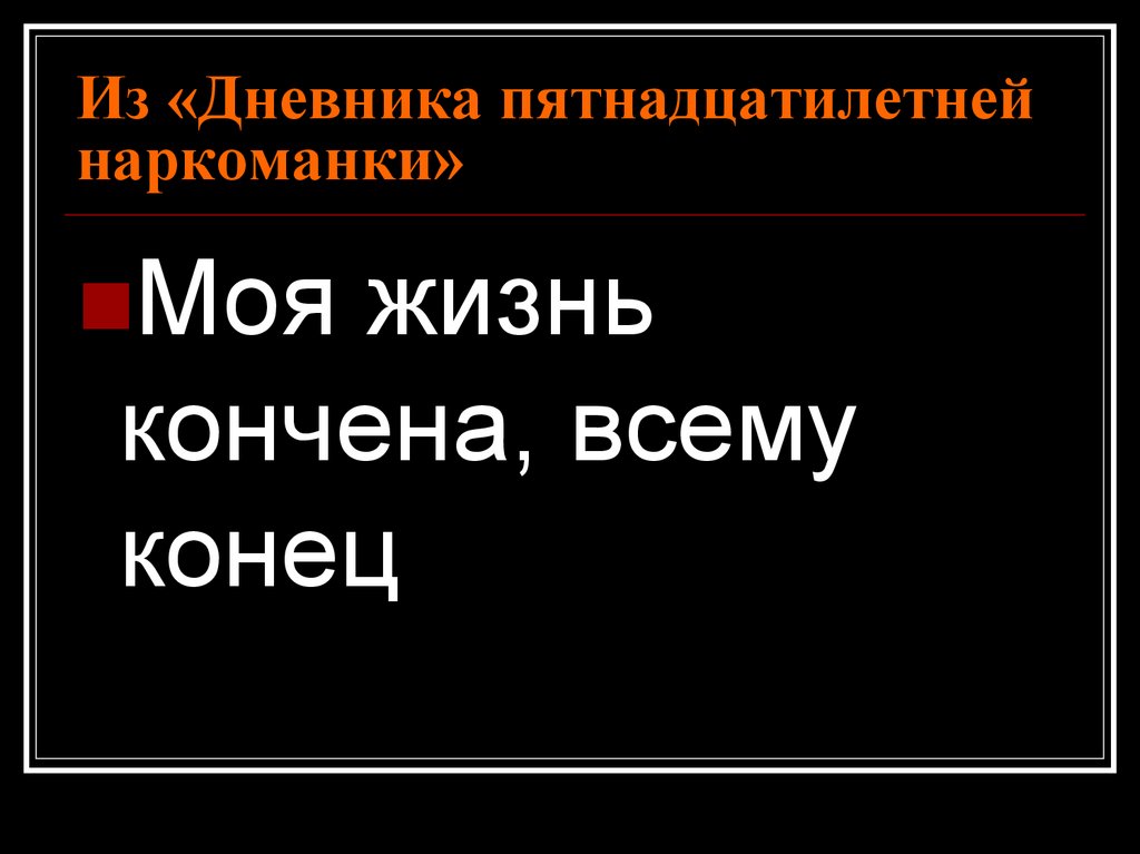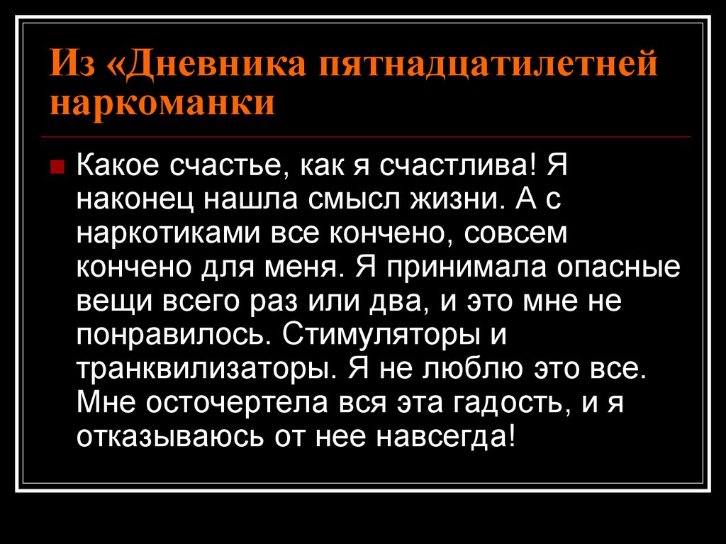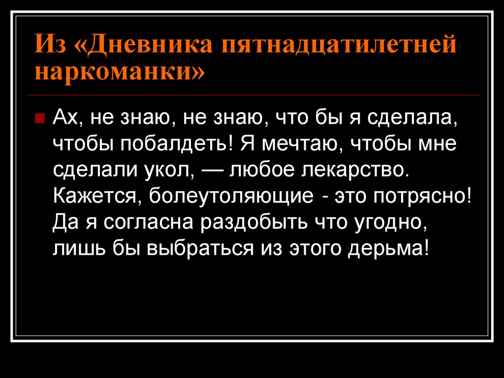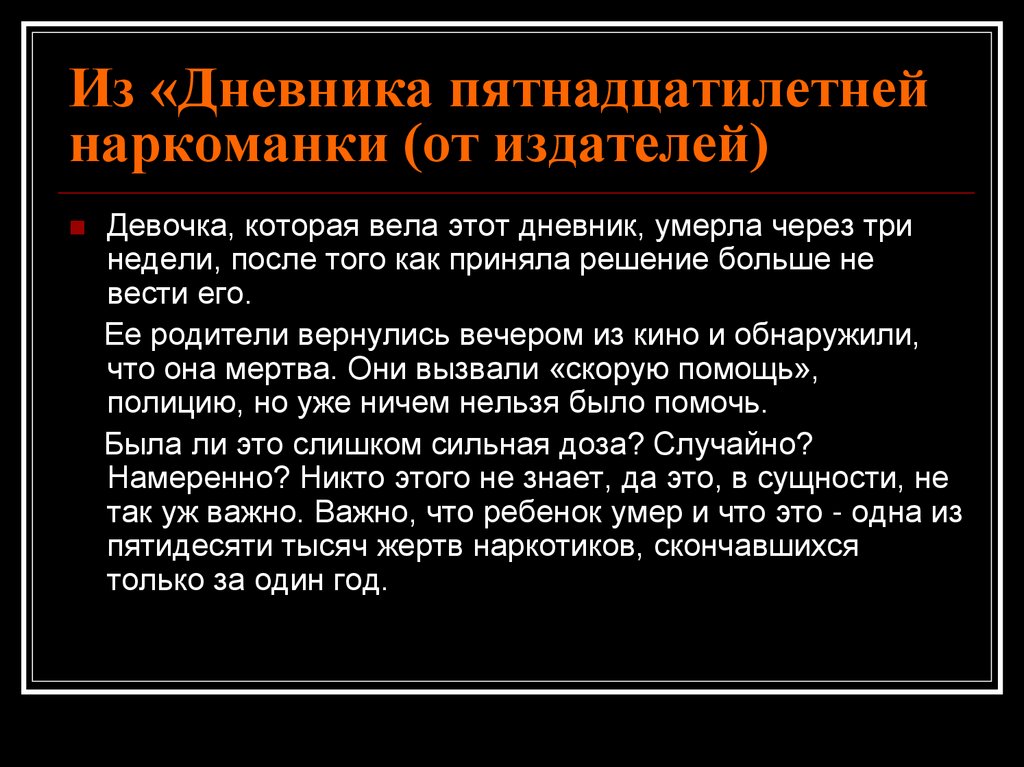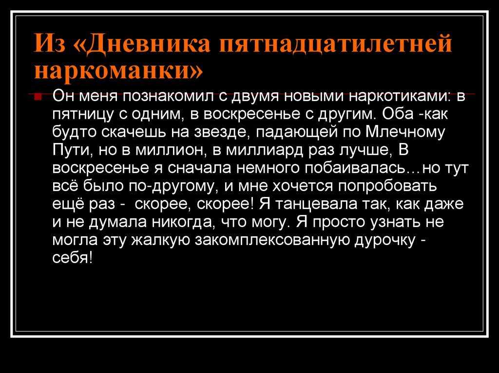Из «Дневника пятнадцатилетнейнаркоманки (от издателей)
