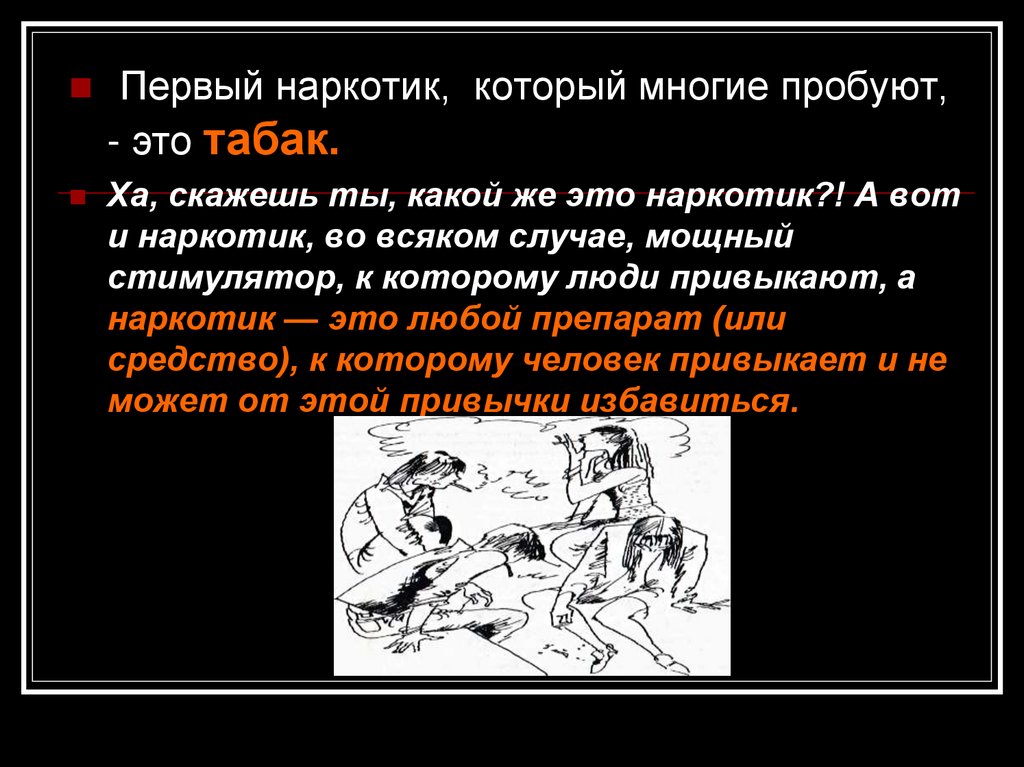 Первый наркотик, который многие пробуют,- это табак.
