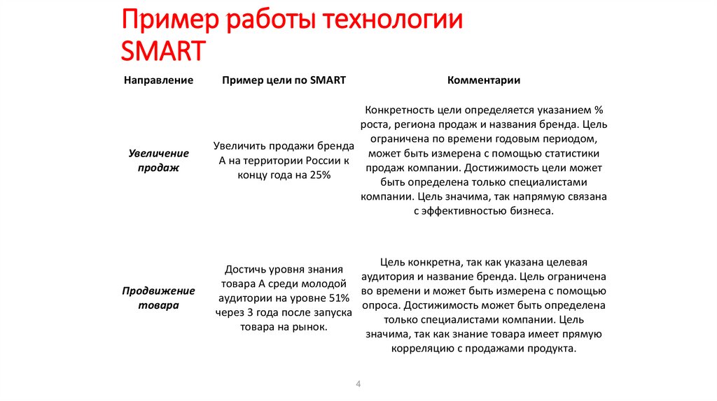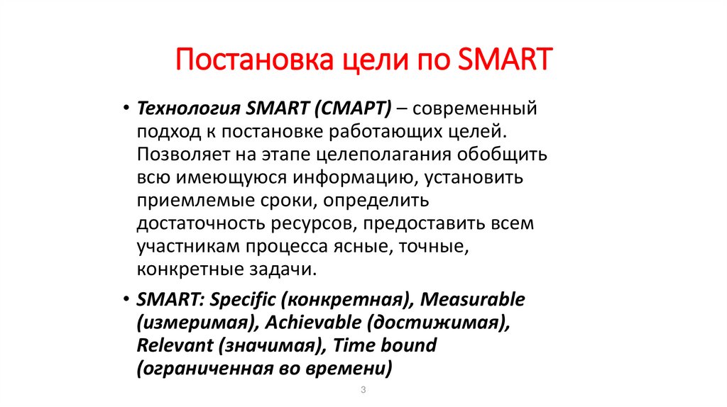 • SMART: Specific (конкретная), Measurable