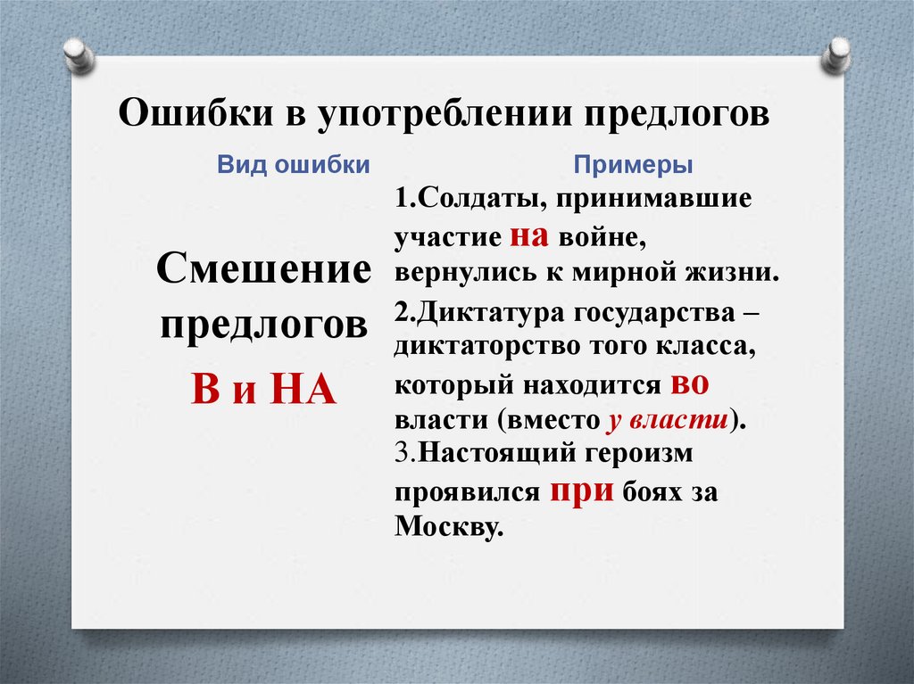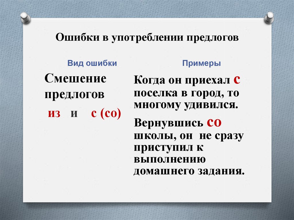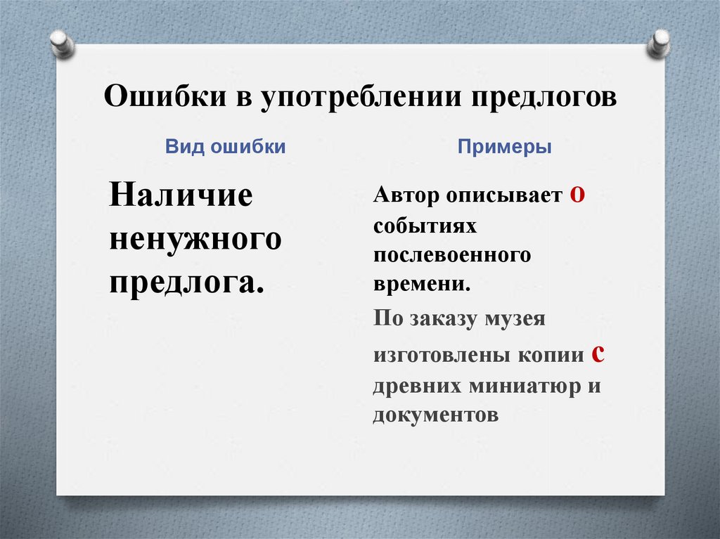 Ошибки в употреблении предлогов