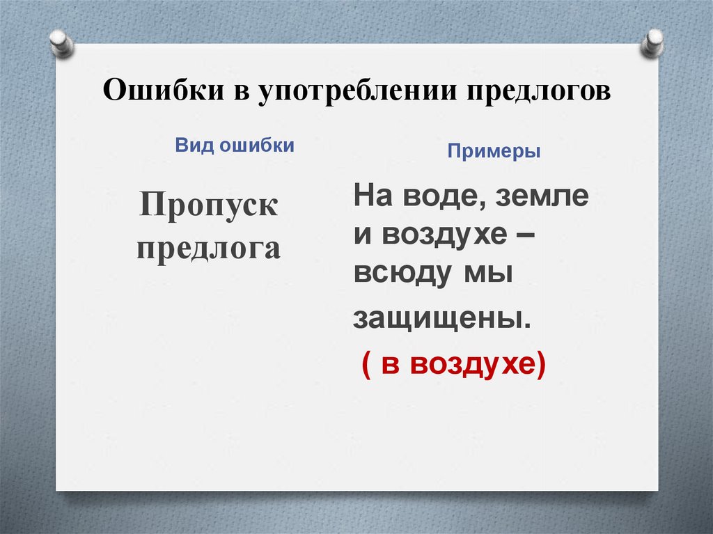 Ошибки в употреблении предлоговВид ошибки