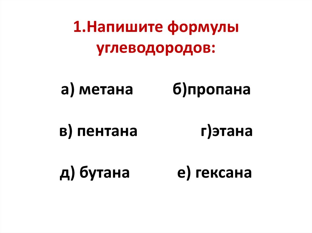 1.Напишите формулыуглеводородов: