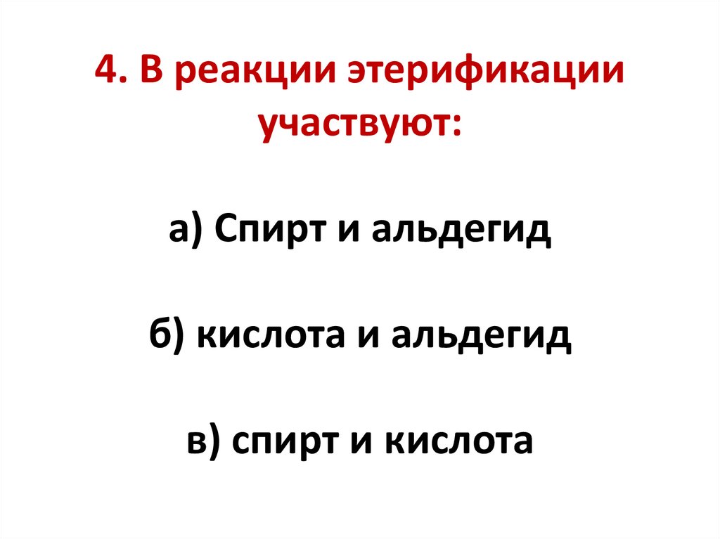 4. В реакции этерификацииучаствуют:
