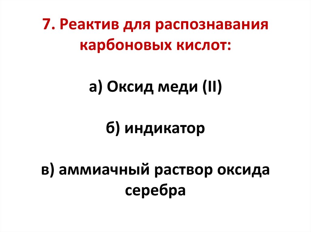 7. Реактив для распознаваниякарбоновых кислот: