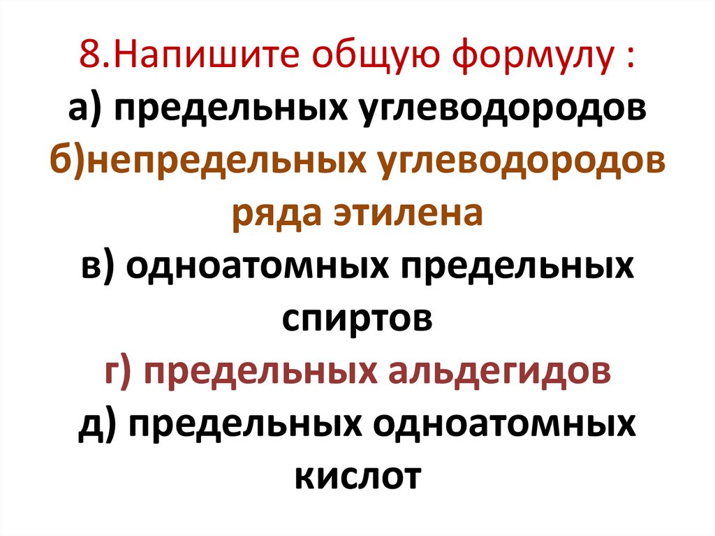 8.Напишите общую формулу :а) предельных углеводородов