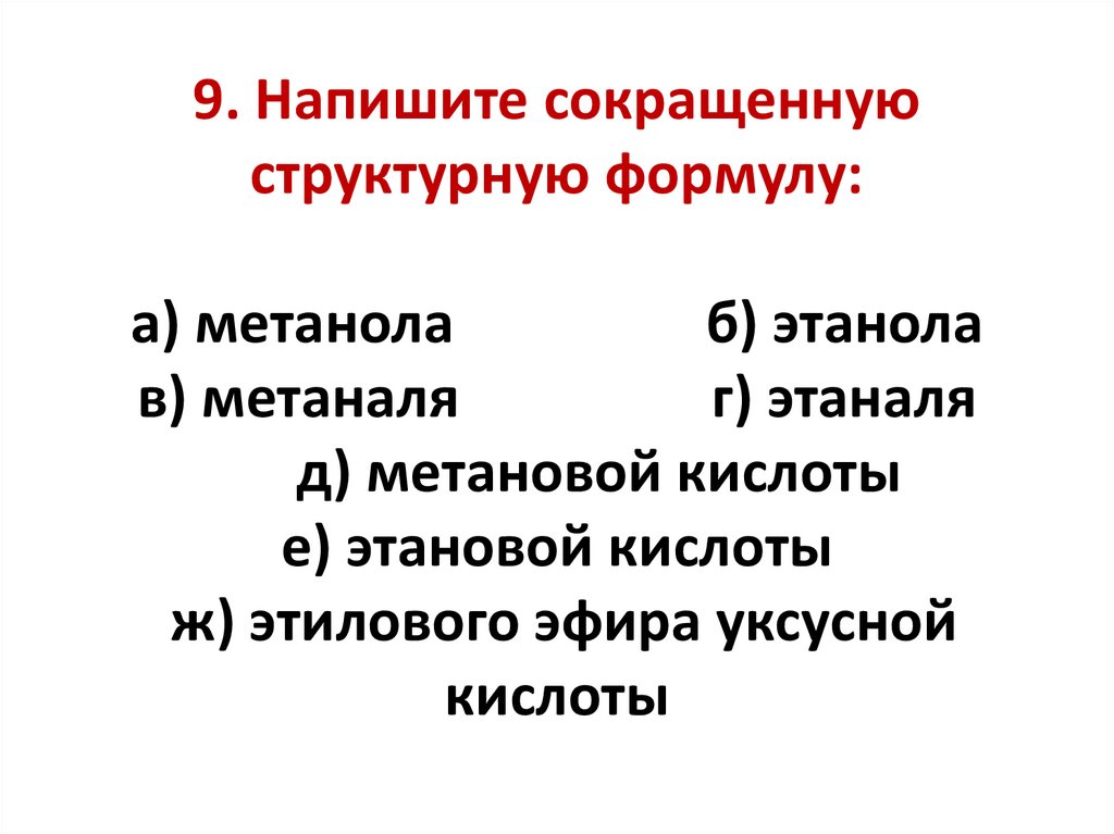 9. Напишите сокращеннуюструктурную формулу:
