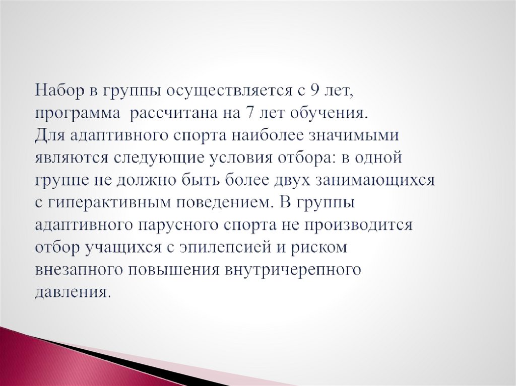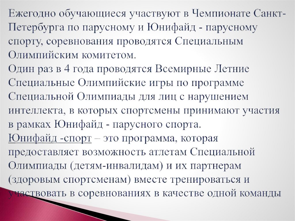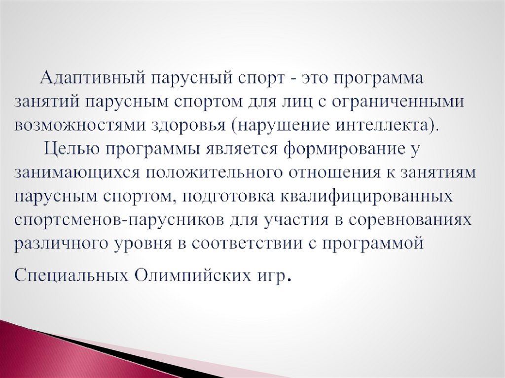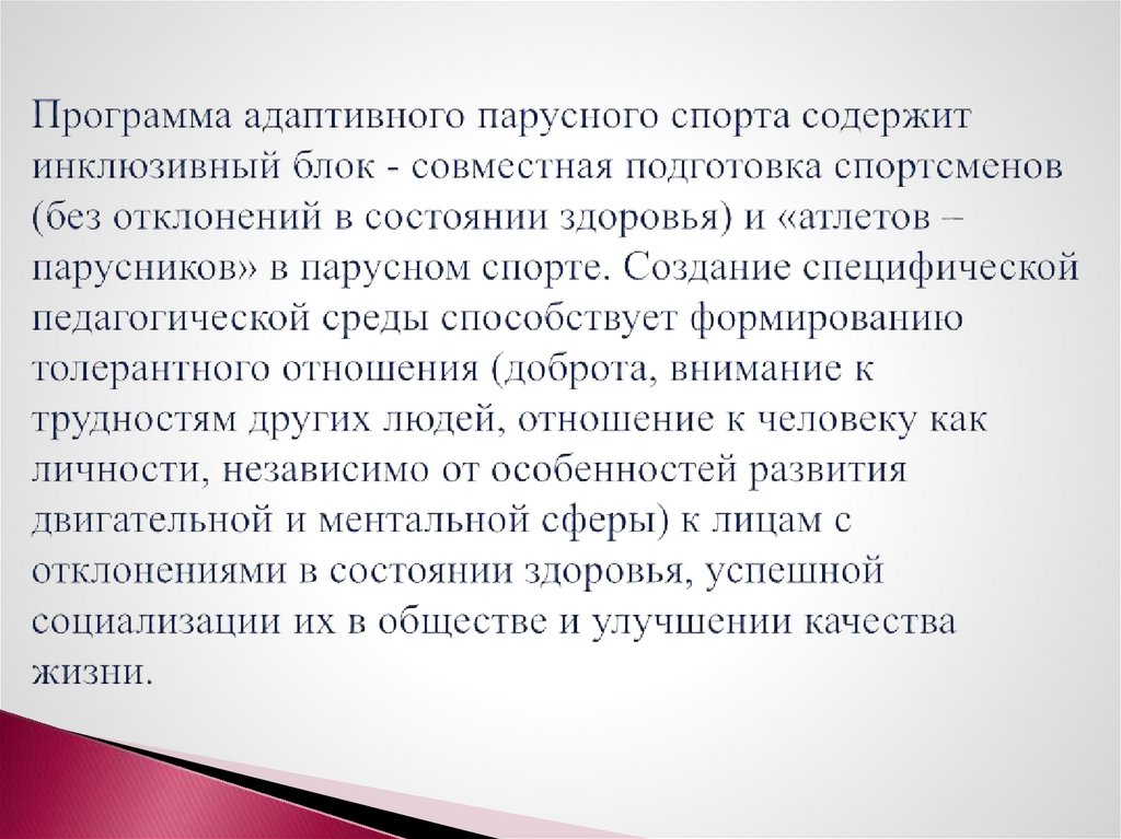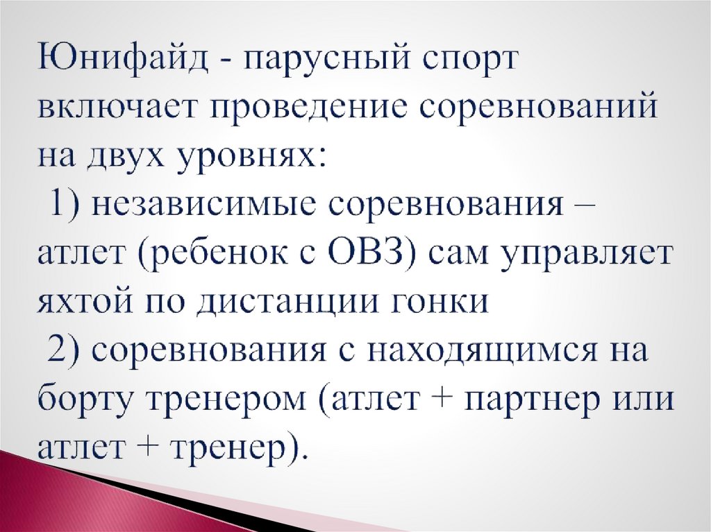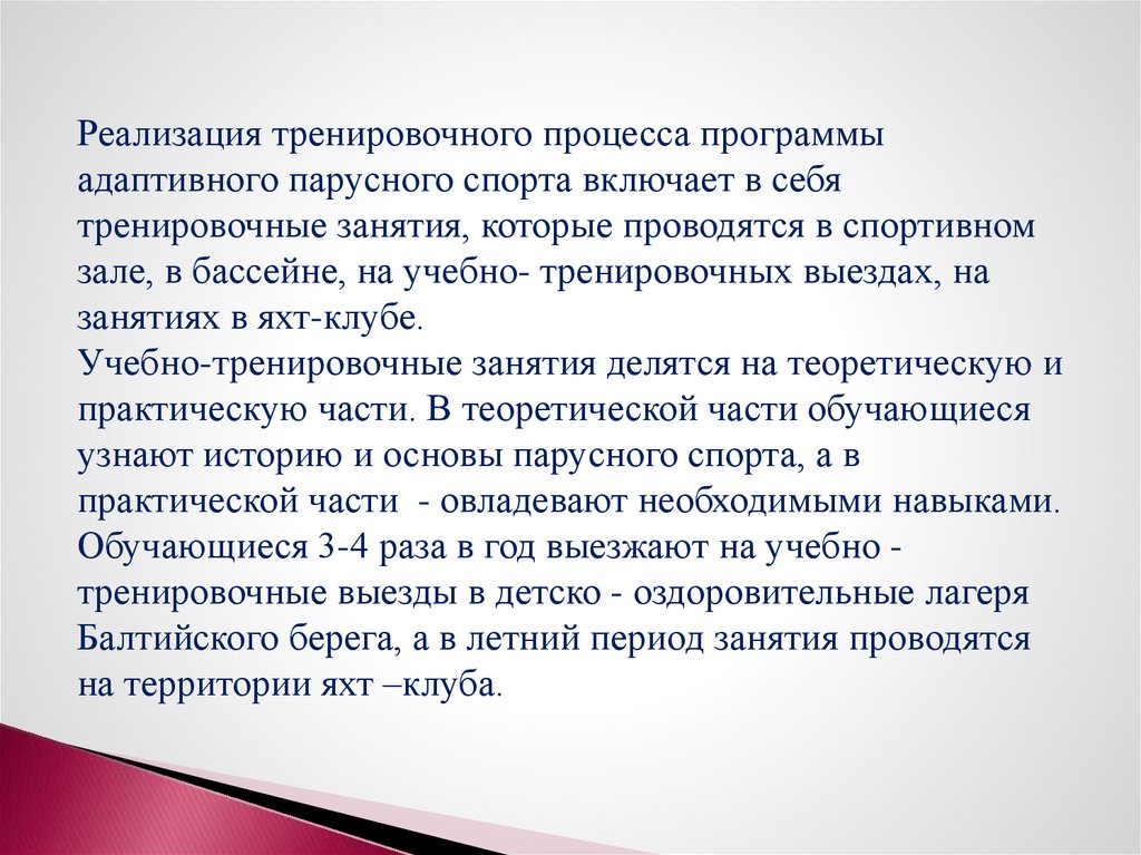 Реализация тренировочного процесса программыадаптивного парусного спорта включает в себя