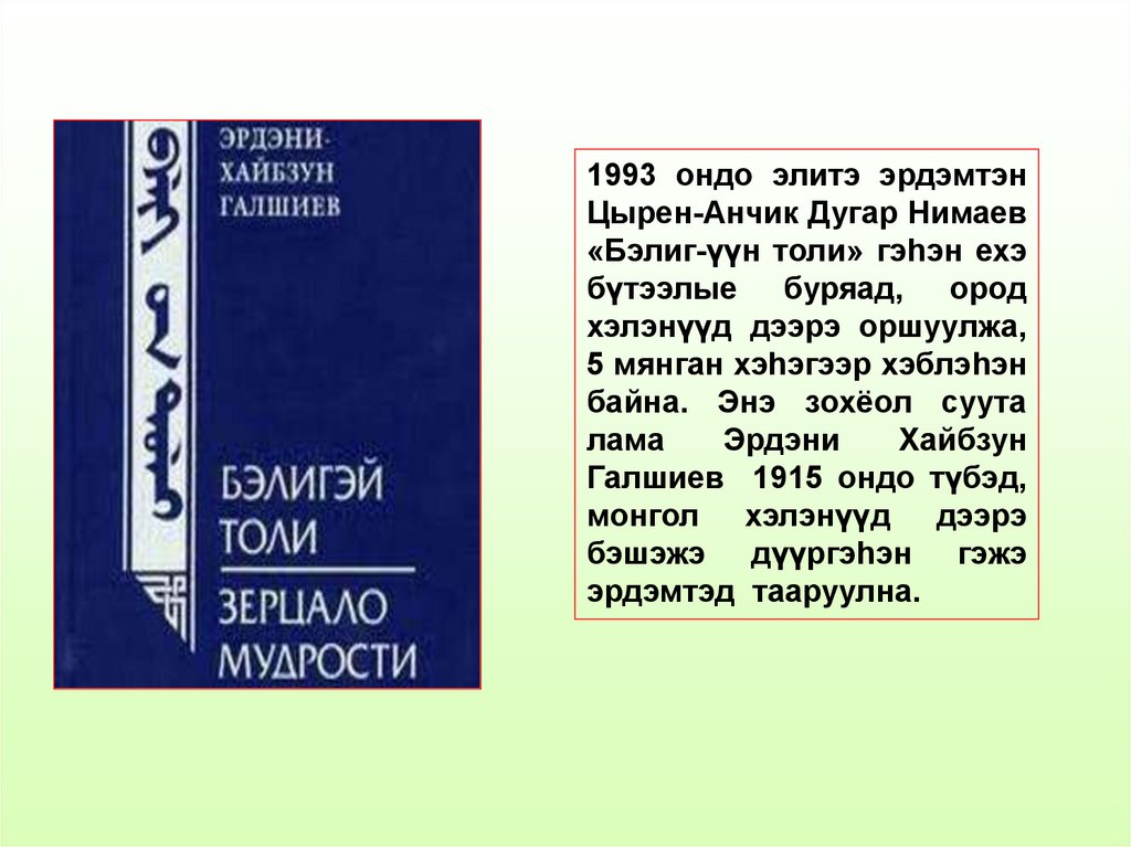 «Бэлигэй толи» - эрдэмухаанай туяа гэрэл. 100 жэл.