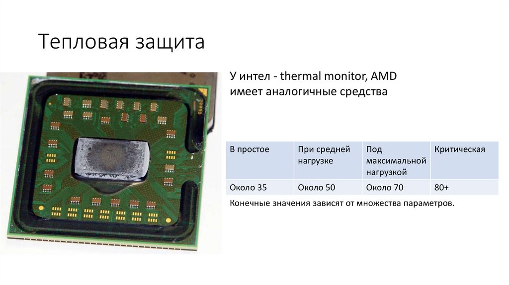 Тепловая защитаУ интел - thermal monitor, AMD