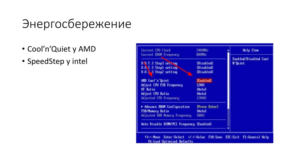 Энергосбережение• Cool’n’Quiet у AMD